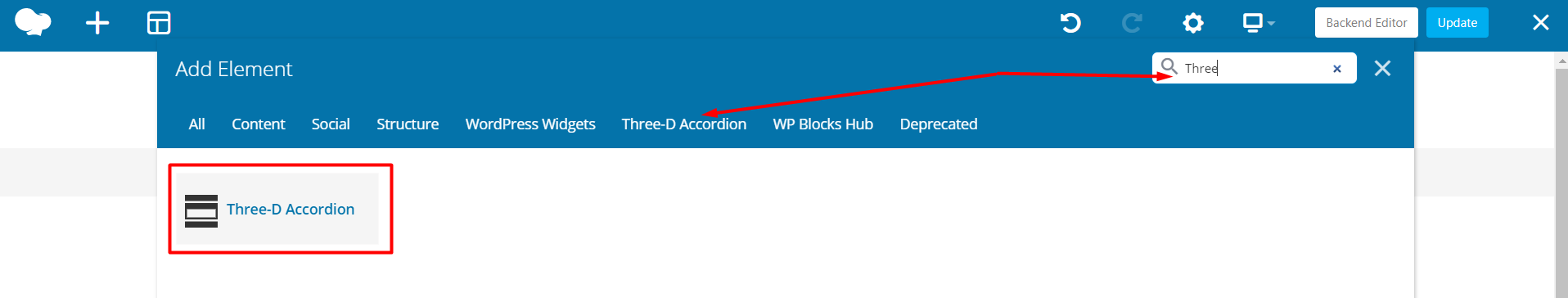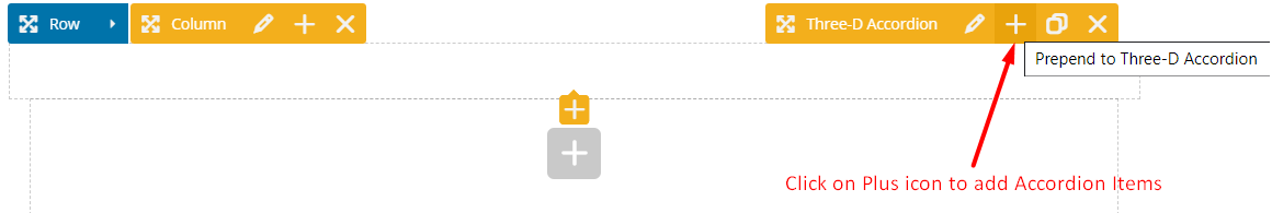 When you hover on currently added Three-D Accordion Element then you can see top of the block there is Plus icon to add Three-D Accordion Items.