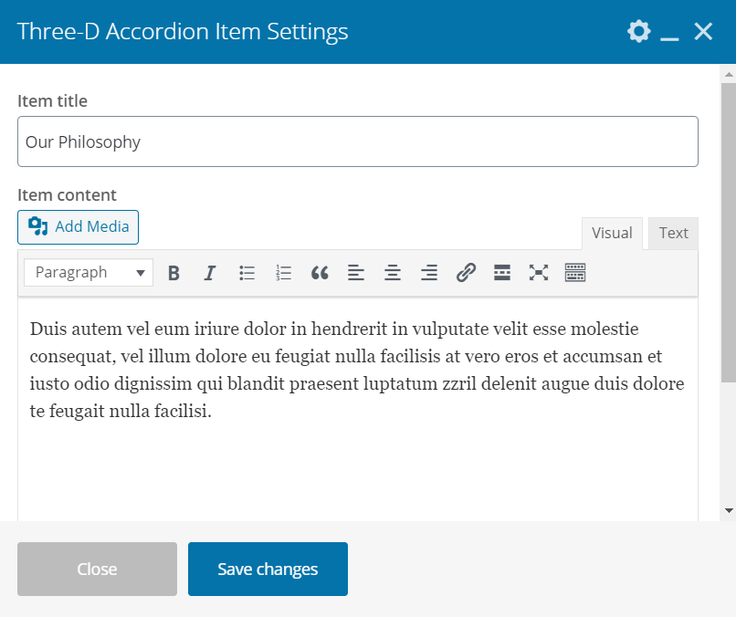 Three-D Accordion for WPBakery is used to create FAQ blocks.